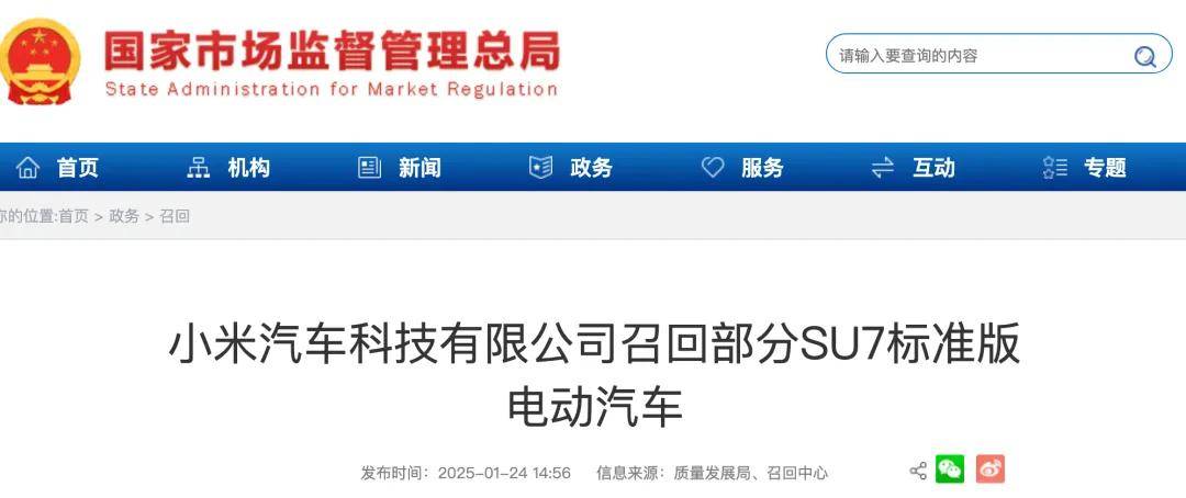小米SU7于2024年3月28日正式上市,价格21.99万元起。零售多个方面数据显现,小米SU7交给以来到2024年末累计销量139487辆,但此次小米轿车召回的规划仍是相对较大的,召回约占全年总销量的22%。据了解,此次召回的车型版别均为标准版车型。